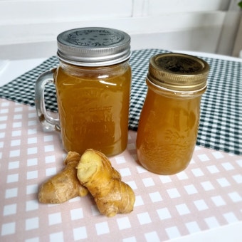 Q4. 아이들도 생강청을 먹어도 되나요? 네, 가능하지만 생강의 매운맛이 아이들에게 자극적일 수 있습니다. 이럴 때는 배를 많이 넣어 매운맛을 중화시키거나, 우유에 타서 라떼로 만들어 주면 거부감 없이 잘 먹습니다. 꿀을 넣었다면 돌(12개월) 지난 아이에게만 먹여야 합니다.