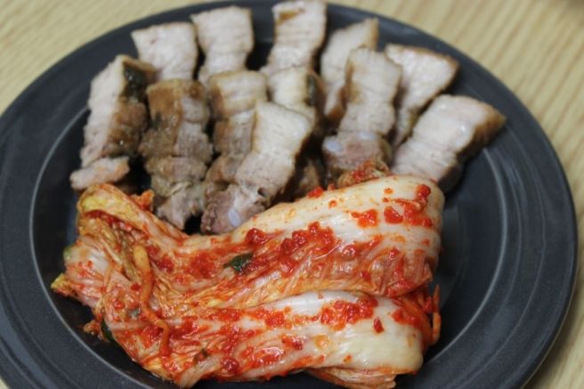 두께는 취향에 따라 다르지만, 일반적으로 0.3~0.5cm 정도가 김치와 싸 먹기에 가장 적당합니다. 너무 두꺼우면 턱이 아프고 금방 배가 부르며, 너무 얇으면 씹는 맛이 부족합니다. 삼겹살은 오돌뼈가 있는 부위는 칼 뒤쪽으로 힘을 주어 조심스럽게 썰거나 제거해 주는 센스가 필요합니다.
