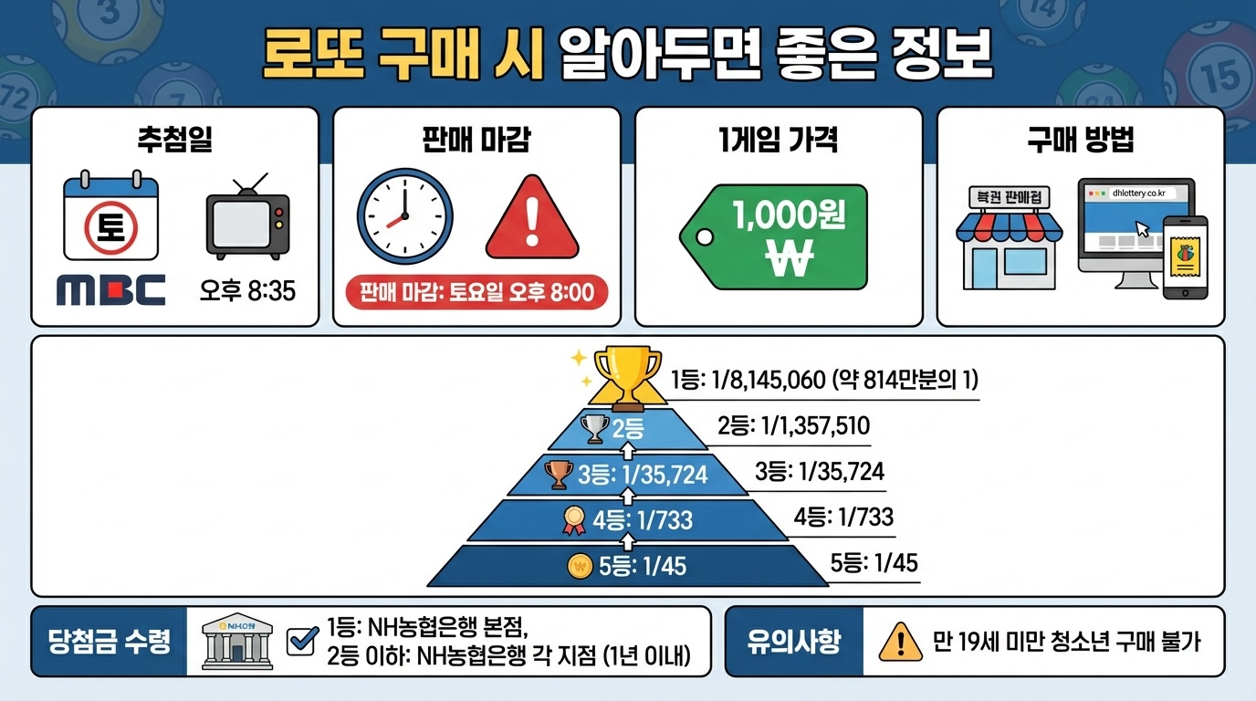 로또를 구매하기 전에 알아두면 유용한 정보들을 정리했습니다. 구매 방법부터 당첨금 수령까지 기본적인 사항을 확인해 보세요.